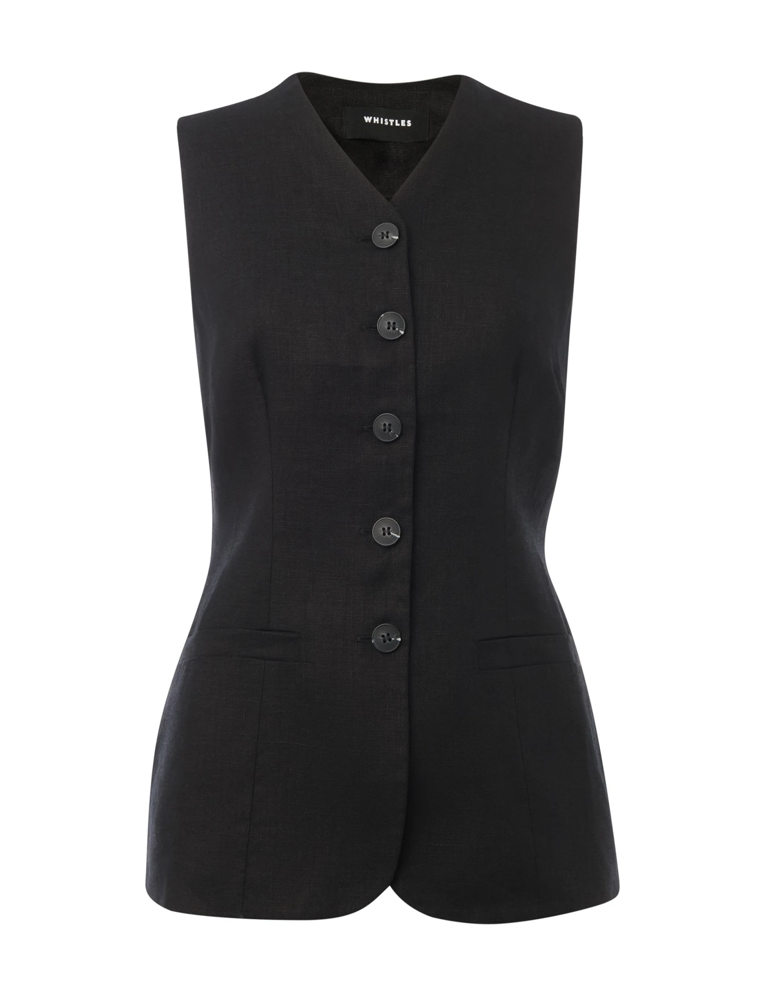 Layer up in style with this pure linen waistcoat from Whistles. It’s designed in a flattering slim fit and features a smart single-breasted front with neat button fastenings. This piece is complete with a timeless v-neckline and an elegant tie detail at the back.