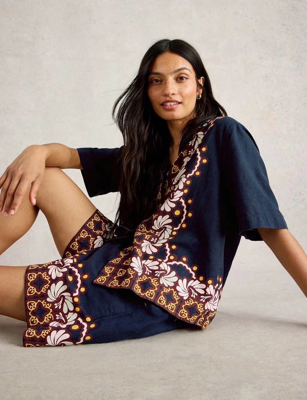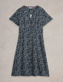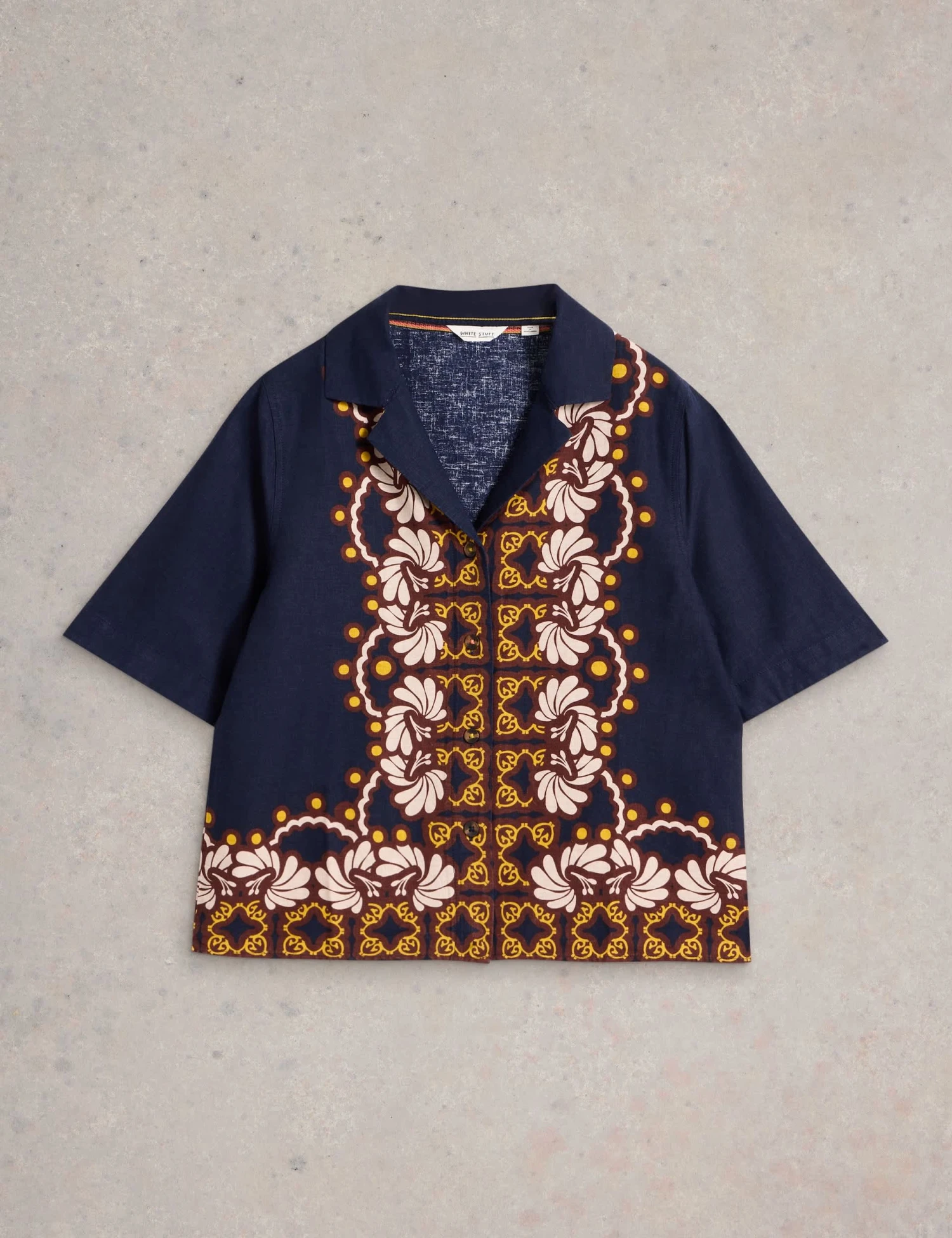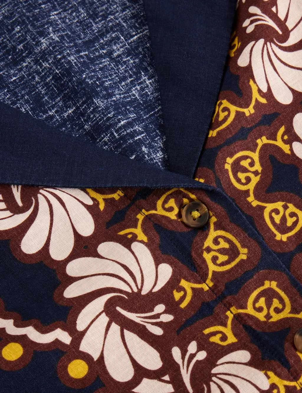 With its short sleeves and linen-rich fabric, this White Stuff shirt feels breezy and lightweight on warmer days. It has a casual revere collar and a button-through fastening for a laid-back look. A striking geometric print makes it stand out.