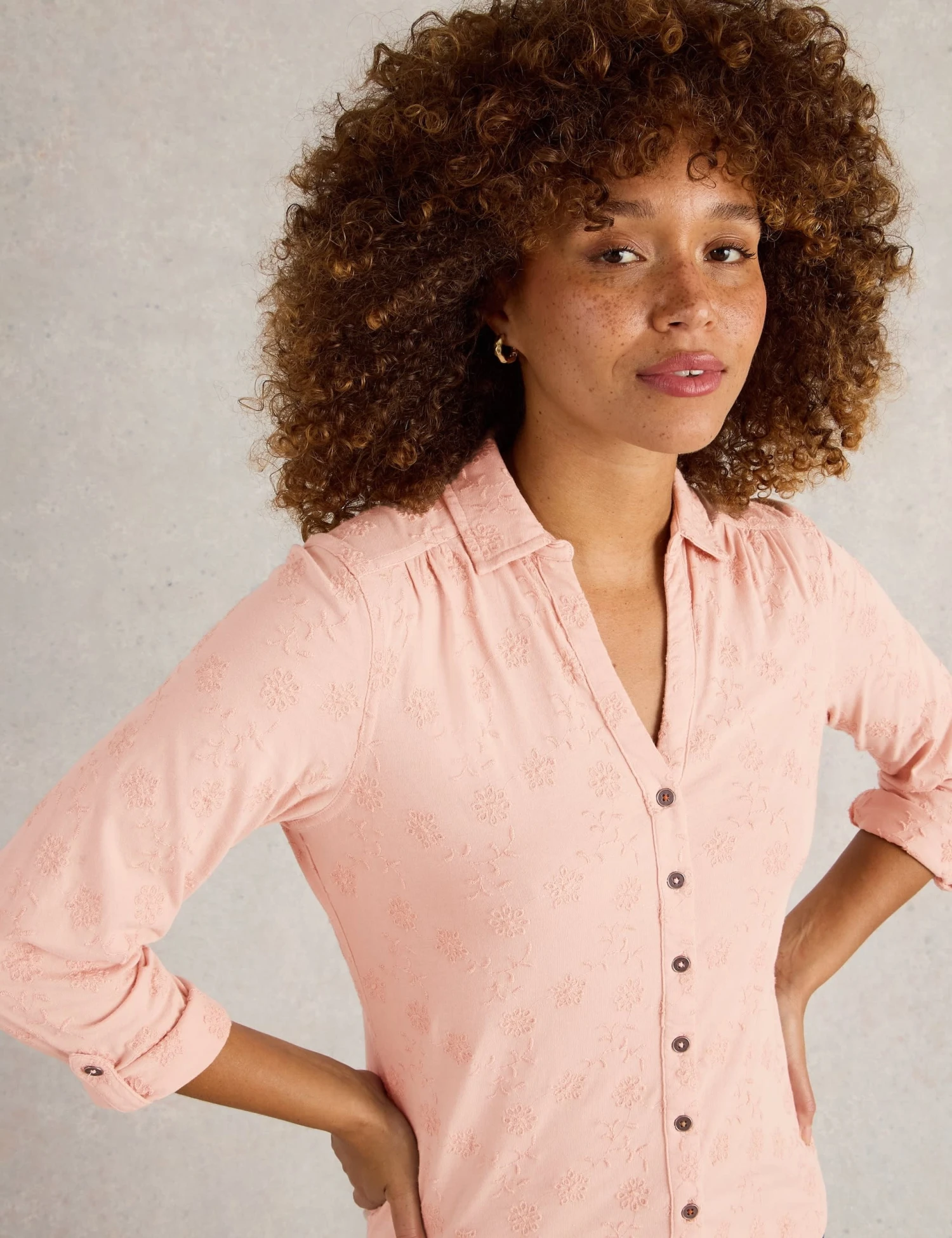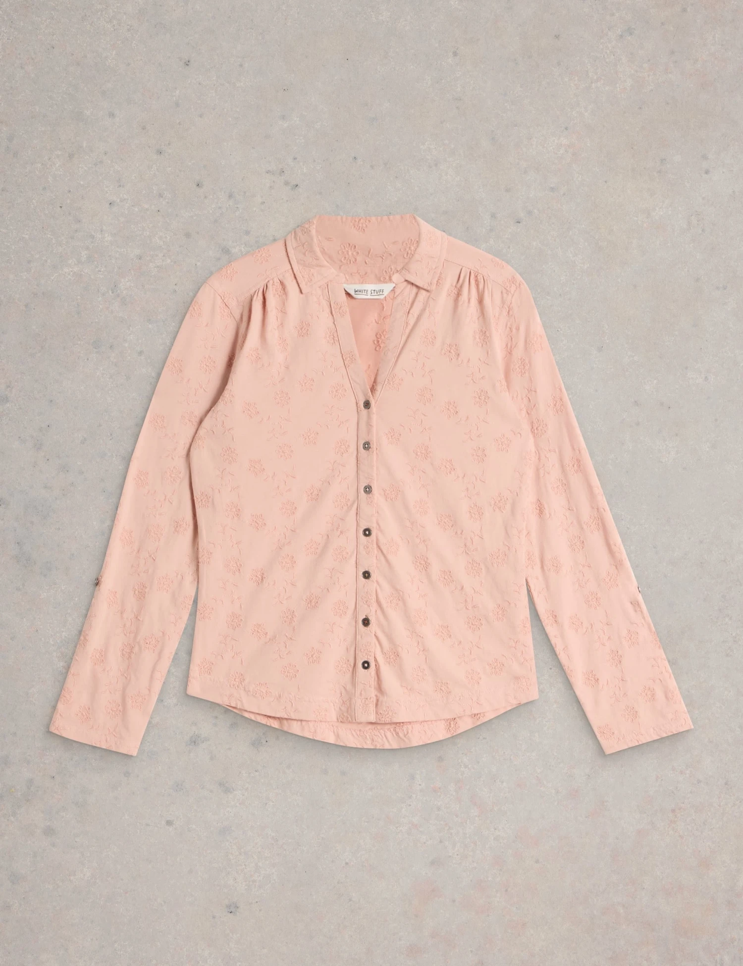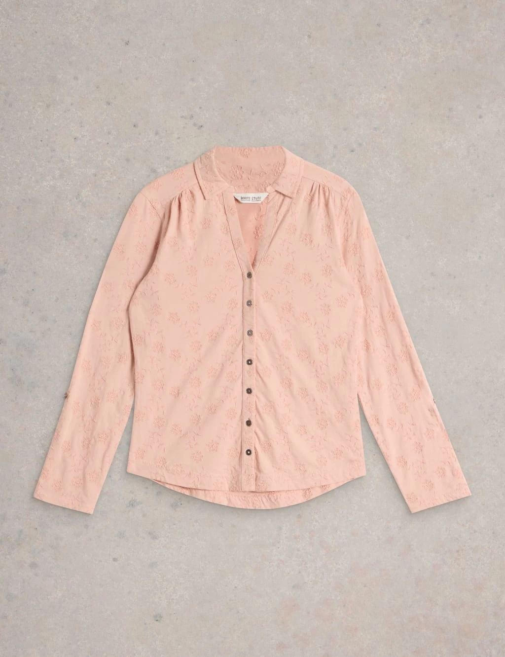This White Stuff pure cotton jersey shirt is an attractive piece for weekends with friends. It’s cut in a comfy regular fit, with a collared v-neck and long sleeves that can be rolled up and secured with tabs at three-quarter length. A broderie floral pattern throughout adds a fresh, uplifting look.