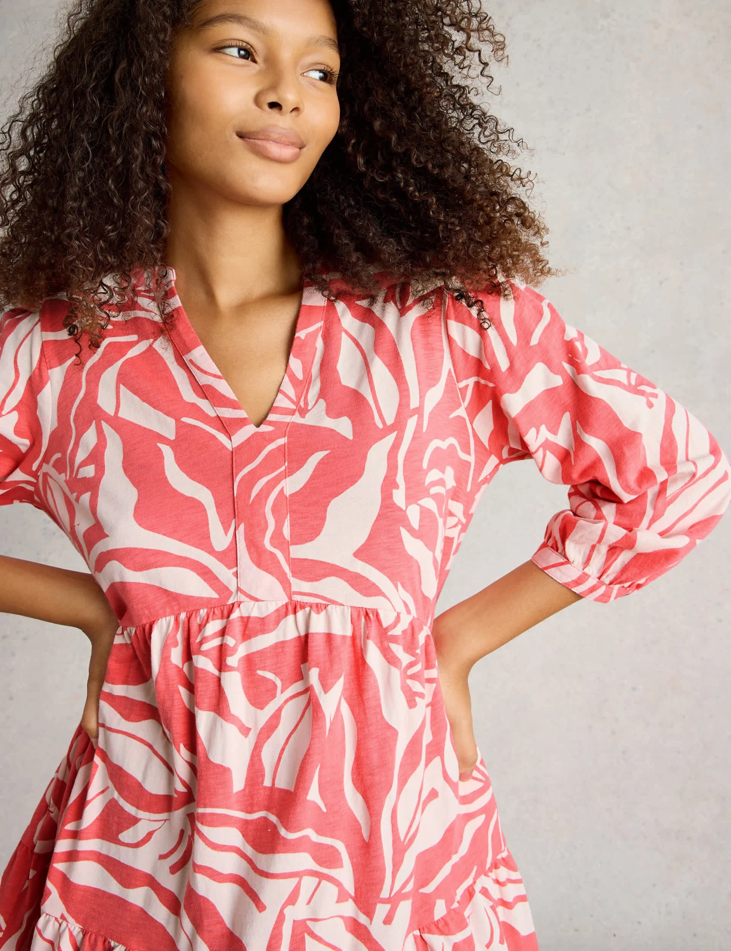 This pure cotton tunic from White Stuff is a striking piece for sunny days. It’s cut in an easy regular fit, with tiered skirting that creates a full and flowing shape. The v-neck is framed by three-quarter sleeves complete with gathered cuffs for a touch of volume. A bold print makes this tunic a standout choice.