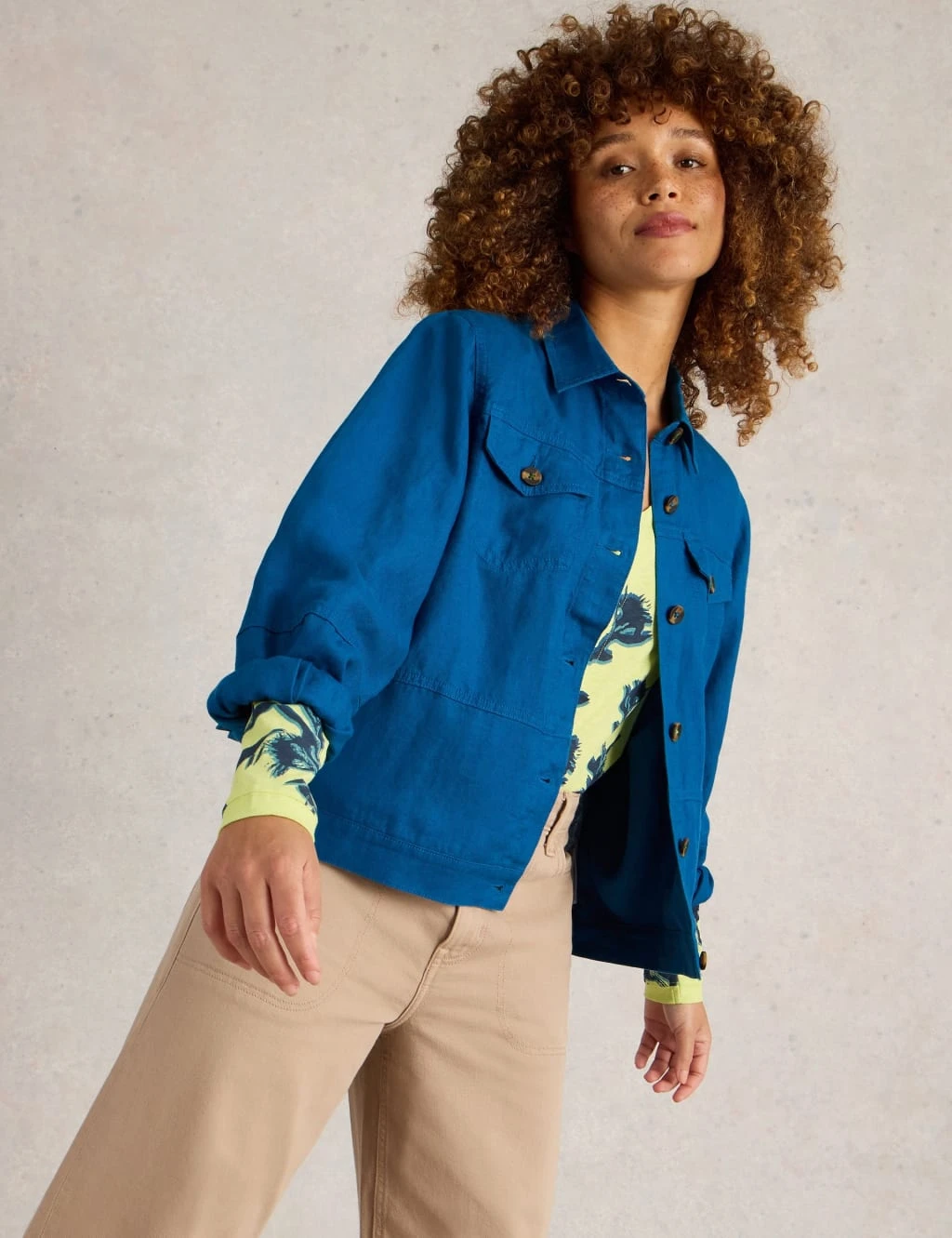 This bright White Stuff jacket is crafted from pure linen for a lightweight and breathable feel. It’s made in a regular fit with a neat collar and a button-through closure. The long sleeves feature pleated panel detailing that adds a gentle blouson effect. Two patch pockets on the chest add a hint of utility style.